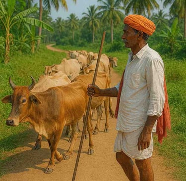 നീളമുള്ള ഒരു വടി എപ്പോഴും കയ്യിലുണ്ടാവുമെങ്കിലും മണിയാപ്പക്കും കാലികൾക്കും അതിൻ്റെ ഉപയോഗമൊന്നും ഇല്ല. അയാളുടെ നോട്ടം തെറ്റി അവ എവിടേയുംപോവുകയുമില്ല. രാവിലെ കിട്ടുന്ന ചൂടുള്ള കാടിയേക്കാൾ അവർ കൊതിച്ചത് മണിയാപ്പയുടെ സ്നേഹം നിറഞ്ഞ തണുത്ത തലോടലിനായിരുന്നു.